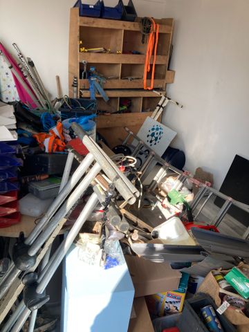 CONTENU DE LA PIECE COMPRENANT: ECHELLE PLIANTE, OUTILLAGE DIVERS...