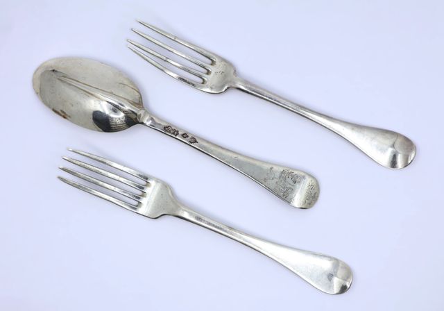 Deux fourchettes de table modèle uniplat et une cuillère modèle q...