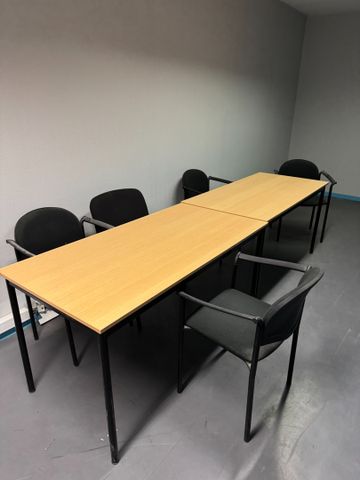 Lot étage comprenant: 3 fauteuils, 5 chaises, 2 bureaux, 5 tables