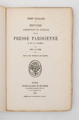 MAILLARD (Firmin). Histoire anecdotique et critique de la presse ...