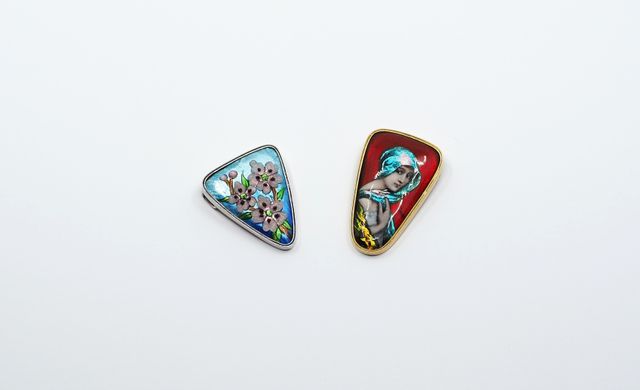 Deux pendentifs en émaux de Limoges présentés dans des montures e...
