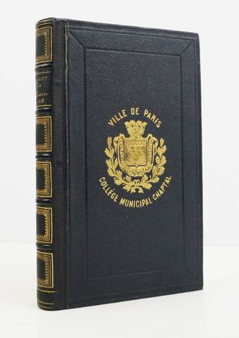 In-8 (21,7 x 13,3 cm) de (4)-388 pp., demi-chagrin bleu nuit de l'époque, dos à nerfs orné de caissons dorés, plats de percaline avec encadrements à froid et fer de prix du Collège Chaptal (reliure de l'époque).