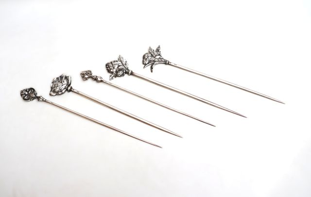 CHRISTOFLE Suite de 5 hâtelets en métal argénté, surmontés chacu...