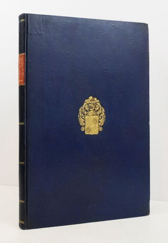 Grand in-folio, cartonnage bleu, dos lisse orné, armes dorées au centre de chacun des plats.