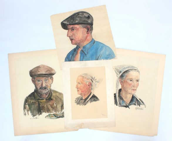 - Couple de pêcheurs, 1934, monogrammé, signé, situé et daté en bas à gauche (50,5 x 41 cm)