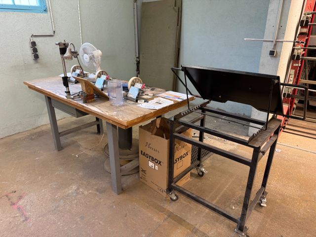 Etabli avec 3 dérouleurs à gaines. Avec pupitre mobile.