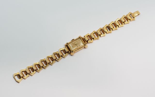Montre bracelet de dame à boîtier rectangulaire et bracelet en or...