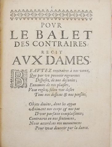 Ballet. Pour le Balet des Contraires ; récit aux dames. sl, sn, sd [c. 1640 ou 1665].