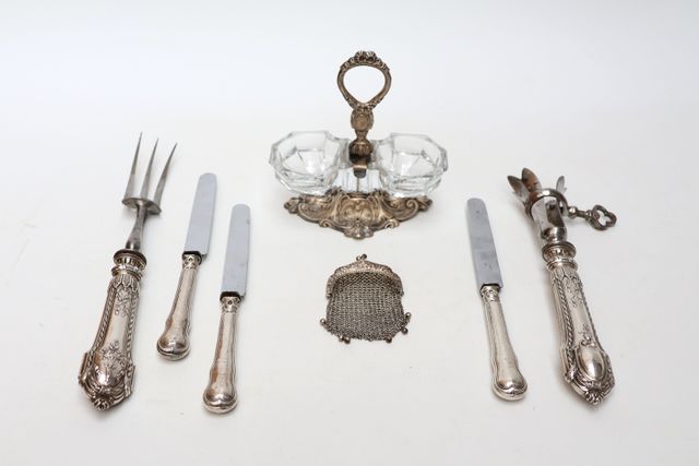 Lot comprenant un saleron double en verre et monture en argent 80