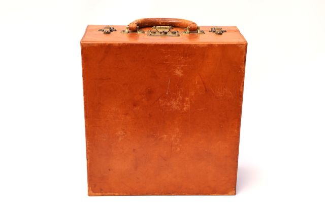 Louis VUITTON Valise rigide de toilette en cuir havane à fermetu