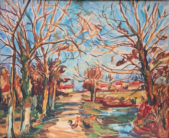 Aimé VALLAT (1912-1993) Paysage aux volailles, 3 mars 1957 Huil...