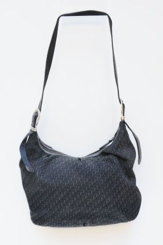 CHRISTIAN DIOR Sac porté épaule en toile oblique noir, anse régl