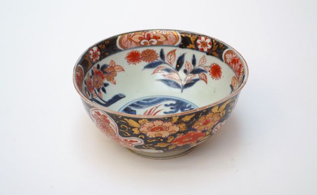 JAPON Bol sur talon en porcelaine à décor bleu, rouge et or dit ...