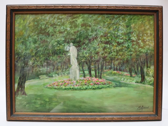 Madeleine RENAUD (1900-1994) Parc au parterre de fleurs et à la ...