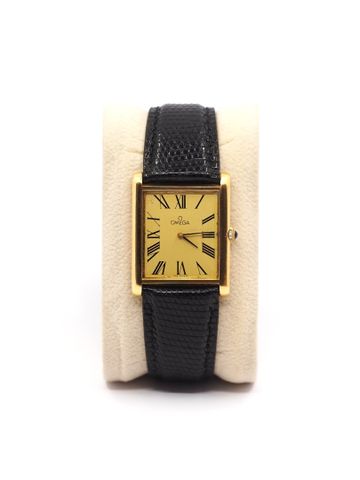 OMEGA Montre bracelet d'homme à boîtier rectangulaire en or jaune...