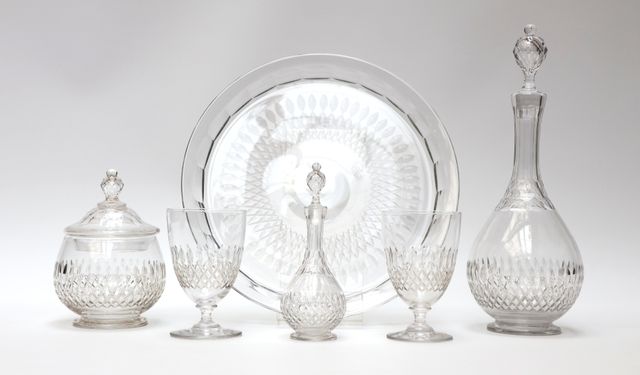 Service de nuit en cristal taillé comprenant une grande carafe, u