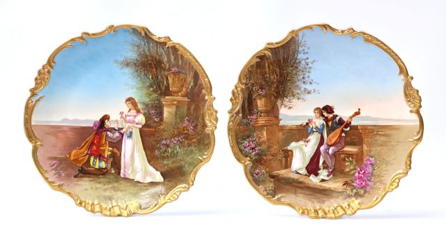LIMOGES Manufacture PLAINEMAISON (1895-1909) Paire de plats à bo