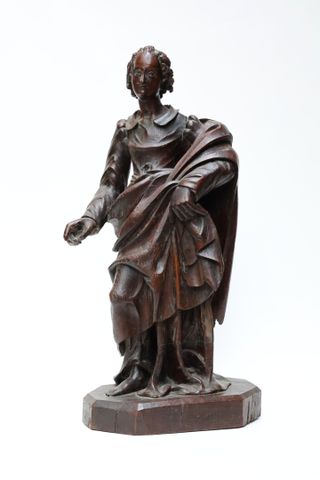 Groupe en chêne sculpté en ronde bosse figurant un saint drapé ...
