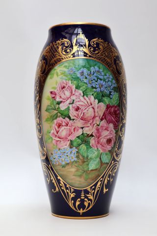 LIMOGES Fabrique Pallas (1926-1950) Important vase oblong en por