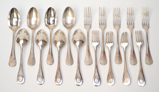 9 fourchettes et 8 cuillères en argent 950°/°° modèle uniplat bag...