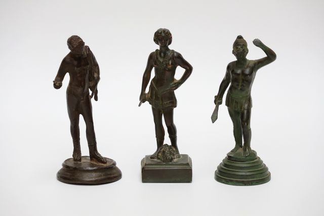 Suite de trois sujets en bronze d'après l'antique, probablement souvenirs du Grand Tour, comprenant :