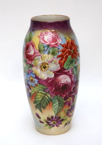 LIMOGES Vase oblong en porcelaine dure émaillée à décor floral p...