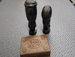 Deux statuettes bois d'Afrique et boite à bijoux bois sculpté.