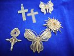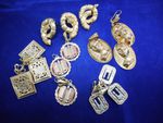 Cinq pendentifs avec cinq paires de boucles d'oreilles or assorti...