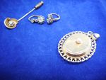 Pendentif or et perle avec épingle or et boucles d'oreilles or et...