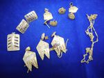 Deux chaines emmêlées or, 4 pendentifs et 4 paires de boucles d'...