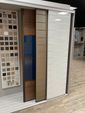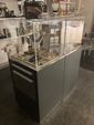 MOBILIER D'AGENCEMENT COMPRENANT: 2 ÉTAGÈRES MÉTALLIQUES, 4 VITRI...
