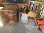 LOT COMPRENANT UNE TABLE, UN FAUTEUIL, UN CHEVET, UN MIROIR ET UN...