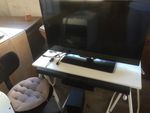 LOT COMPRENANT TÉLÉVISEUR ECRAN PLAT + ENCEINTE+ BUREAU ET CHAISE