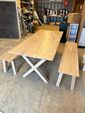 FLIP DESIGN Ensemble table et deux bancs en chêne lamellé vernis ...