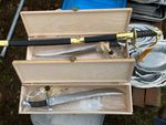 LOT DE 2 POELES A PAELLA 110 CM, AVEC SUPPORT A ROULETTES ET 2 BR...