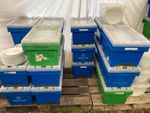 LOT COMPRENANT: 65 ASSIETTES DE PRESENTATION BLEUES, ET 82 ASSIET...