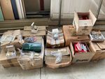 LOT COMPRENANT: 28 CARTONS DE POIGNÉES EN LAITON, MARTEAUX ET DIV...