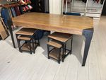 LOT DE 3 MEUBLES A HAUTEUR D'APPUI, BUREAU, TABLE ET 6 CHAISES