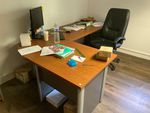 LOT DE MOBILIER DE BUREAU: UN BUREAU, UN FAUTEUIL, 2 CHAISES, UNE...