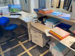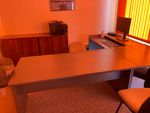 LOT DE MOBILIER DE BUREAU COMPRENANT: DEUX BUREAUX, ÉTAGÈRES ET M...