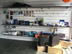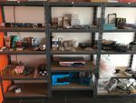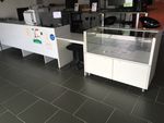 Lot de mobilier comprenant étagères métalliques, comptoir accueil...