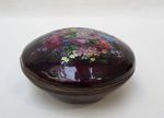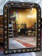 Glace en bois noirci à décor floral peint et incrustations de nac...