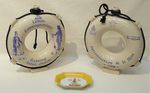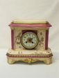 Pendule borne en céramique à décor d'oiseaux et papillons H. 27 c...