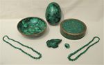 Lot d'objets divers en malachite comprenant deux oeufs, une coupe...