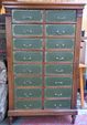 Cartonnier en bois naturel ouvrant à 16 casiers en cuir vert doré...