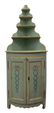 Encoignure deux-corps à étagères en bois laqué vert à décor de nœ...
