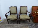 Suite de deux fauteuils dépareillés en acajou et placage d'acajou...