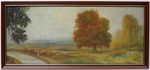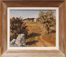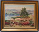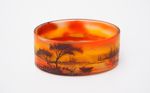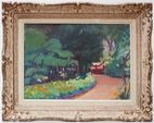 Commode sauteuse galbée toutes faces en bois de placage et paysag...