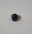Bague or gris sertie d'un saphir flanqué de douze petits diamants...