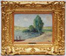 Fauteuil en bois naturel mouluré et sculpté à dossier plat dit "à...